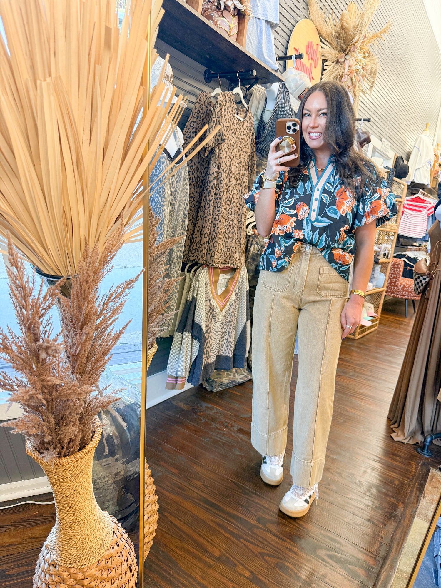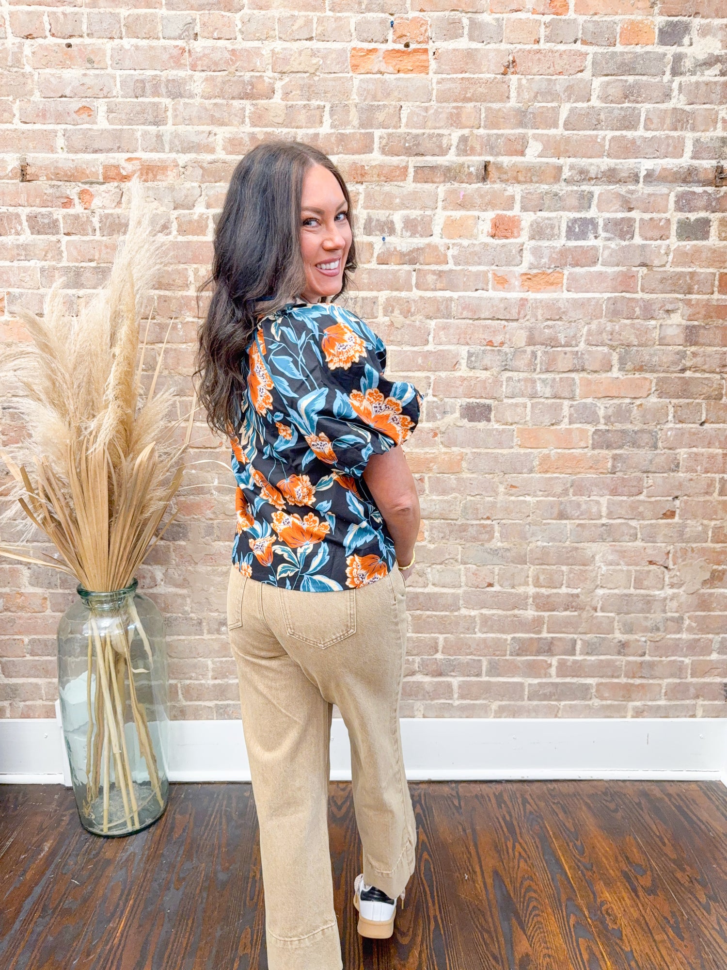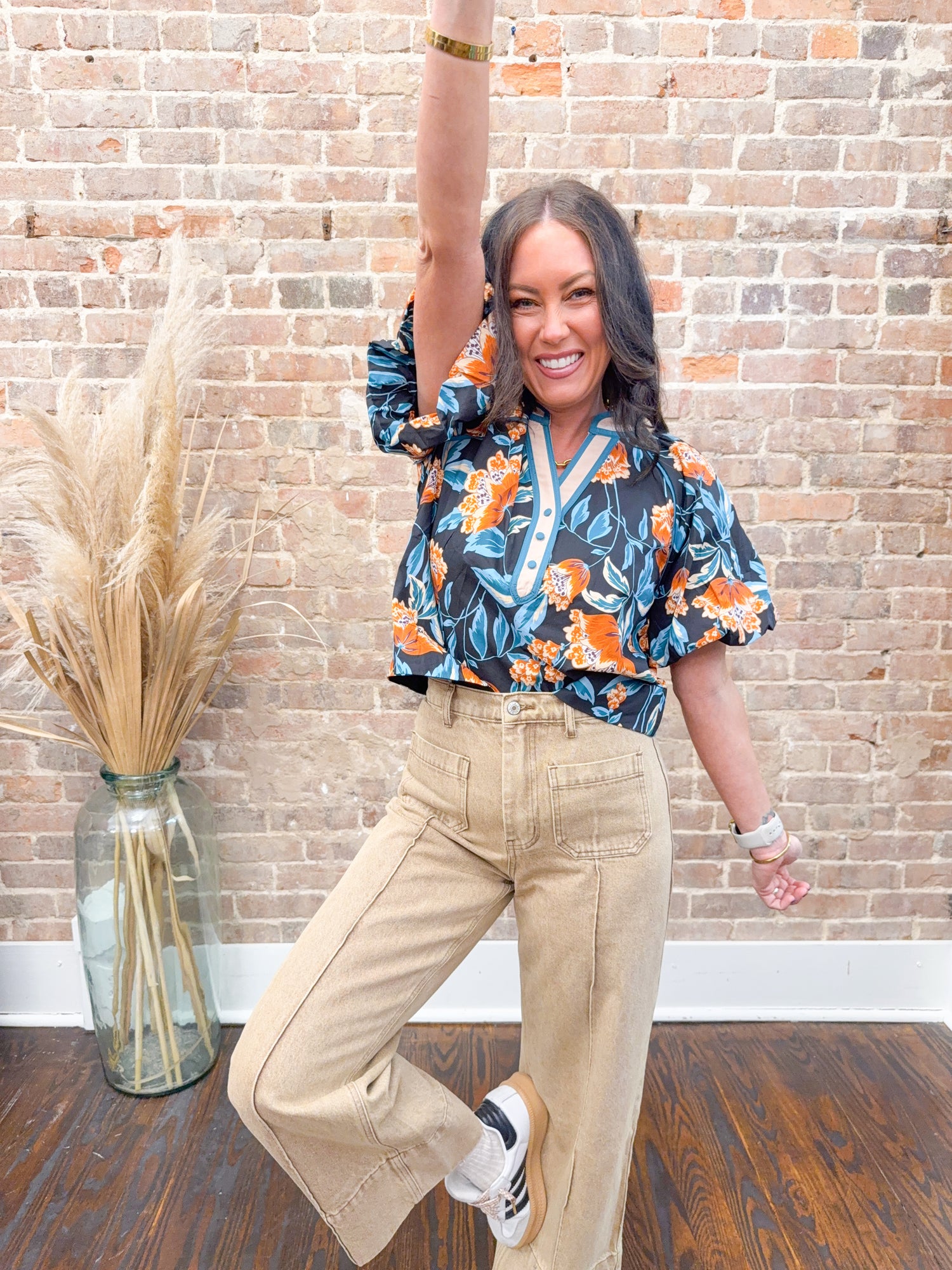 Elevate your wardrobe with the Blakely floral short bubble sleeve top, designed to blend playful charm with effortless style. Featuring a striking striped contrast accent and button closure at the front, this woven, lightweight top keeps you comfortable without compromising on shape or coverage. Its non-sheer fabric and unlined design make it perfect for warm days, offering a fresh, breathable option that pairs beautifully with your favorite bottoms. Add a touch of bold femininity to your everyday look with this standout piece.