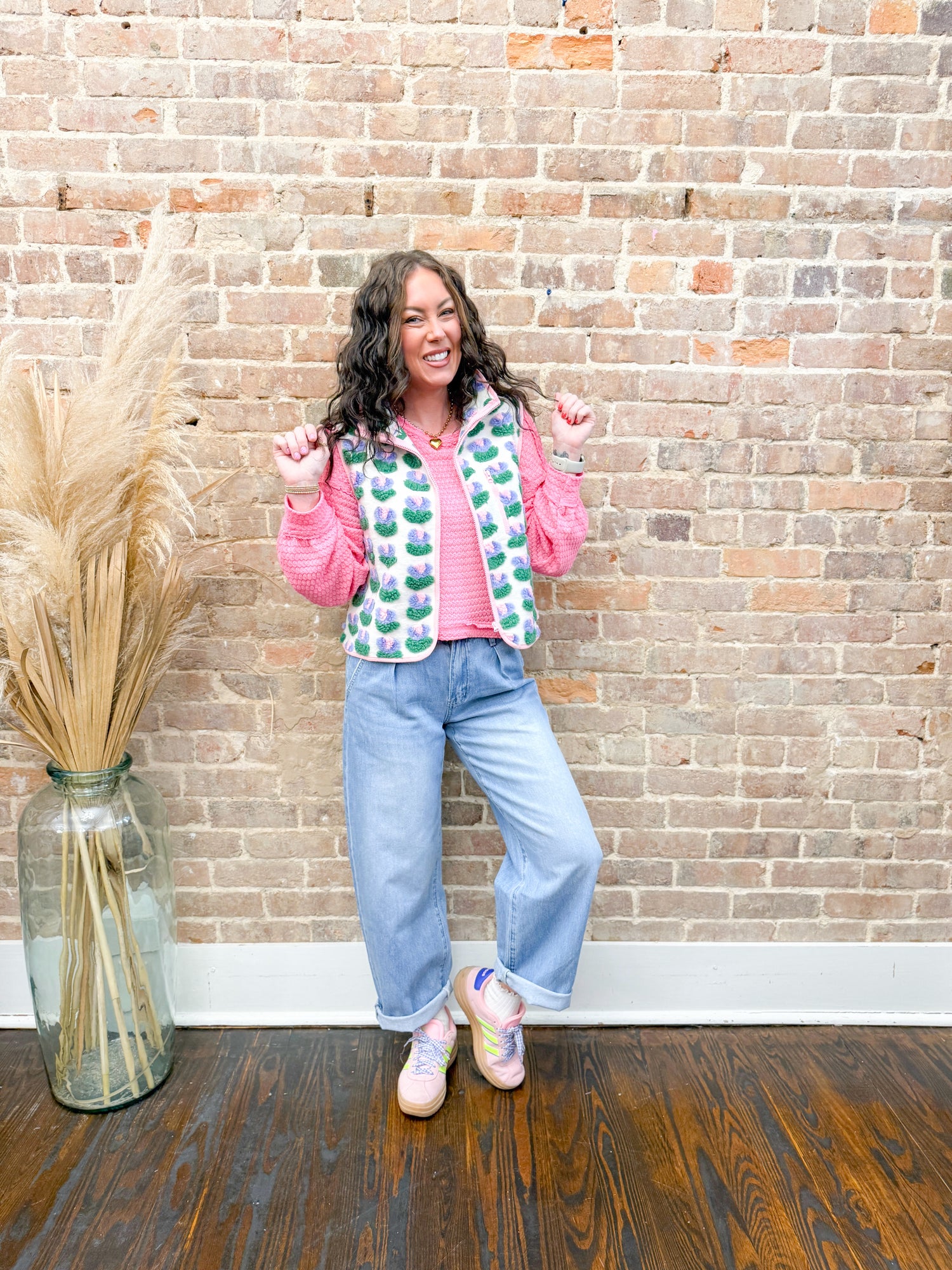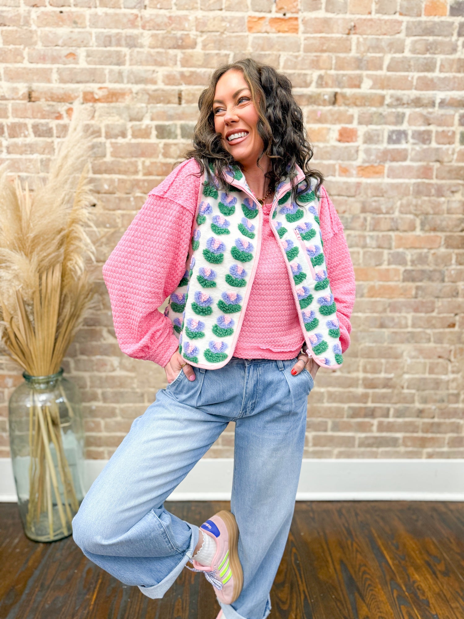 Layer up with the Brinley Textured Vest, your new go-to for effortless style! This versatile piece features a cozy mock neck to keep you warm, a convenient front zip for easy on-and-off, and practical pockets to stash your essentials. The textured fabric adds visual interest to any outfit, making it perfect for casual days or dressed-up occasions. Throw it over your favorite tee or sweater for instant dimension and comfort.