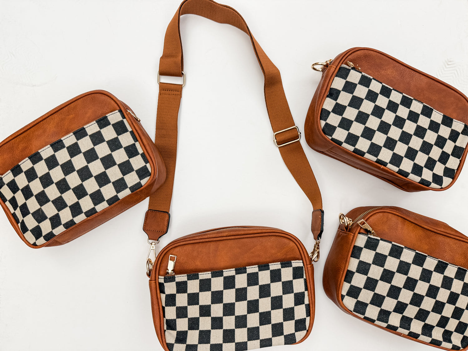 Elevate your everyday look with this trendy Checkered Crossbody Bag in a versatile blend of brown, black, and white. Perfectly neutral, it pairs effortlessly with any outfit while offering hands-free convenience. Designed for style and practicality, this bag is your go-to accessory for day-to-night wear.