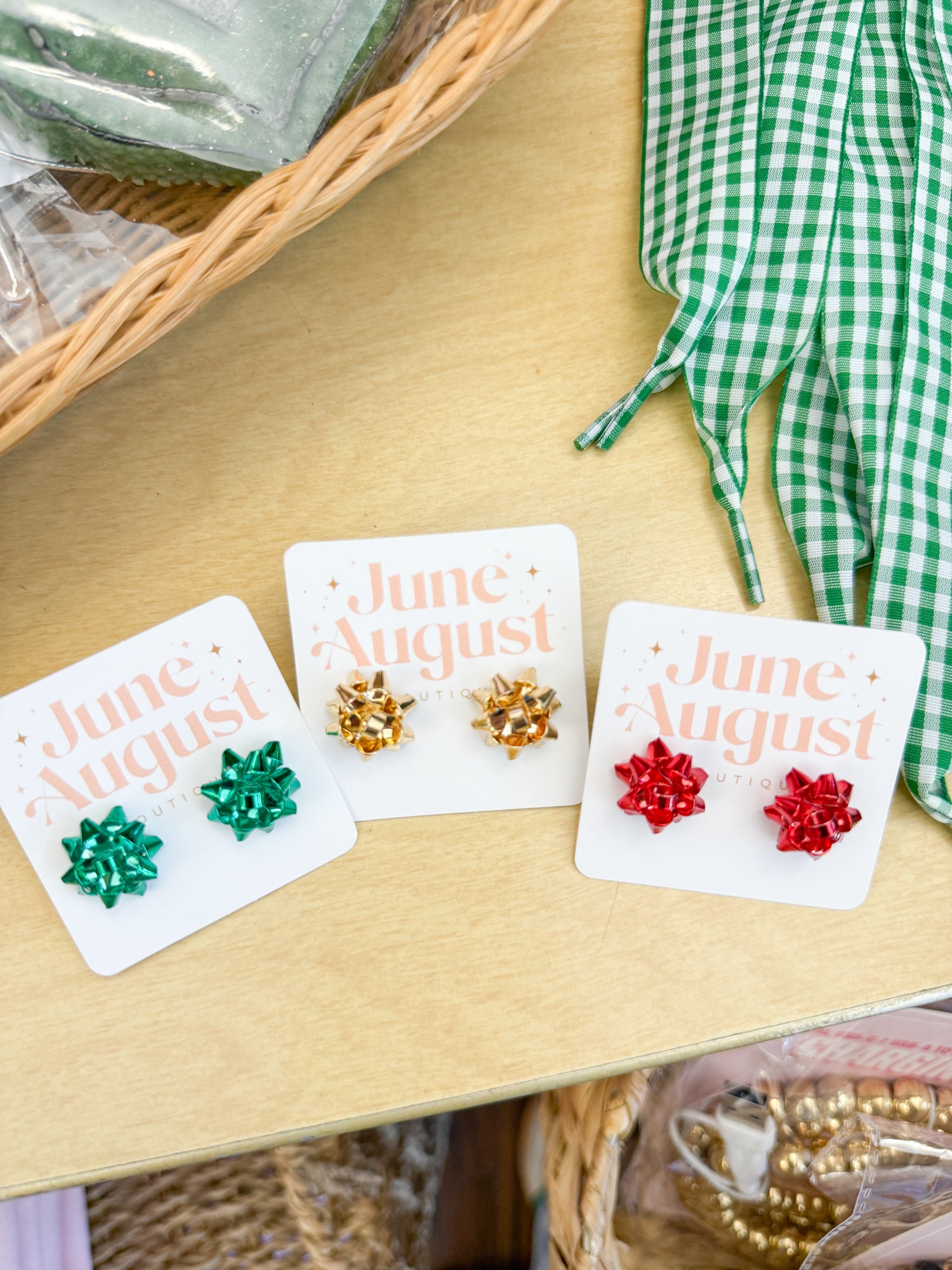 Spread holiday cheer with these delightful Christmas Bow Earrings—the perfect festive accessory to brighten your seasonal style. Featuring charming bow designs that capture the spirit of the holidays, these cute earrings add a playful touch to any outfit. Whether you're attending festive gatherings or simply want to celebrate the season in style, these earrings bring instant holiday magic to your look. Lightweight and comfortable for all-day wear, they're an ideal gift for anyone who loves festive fashion.