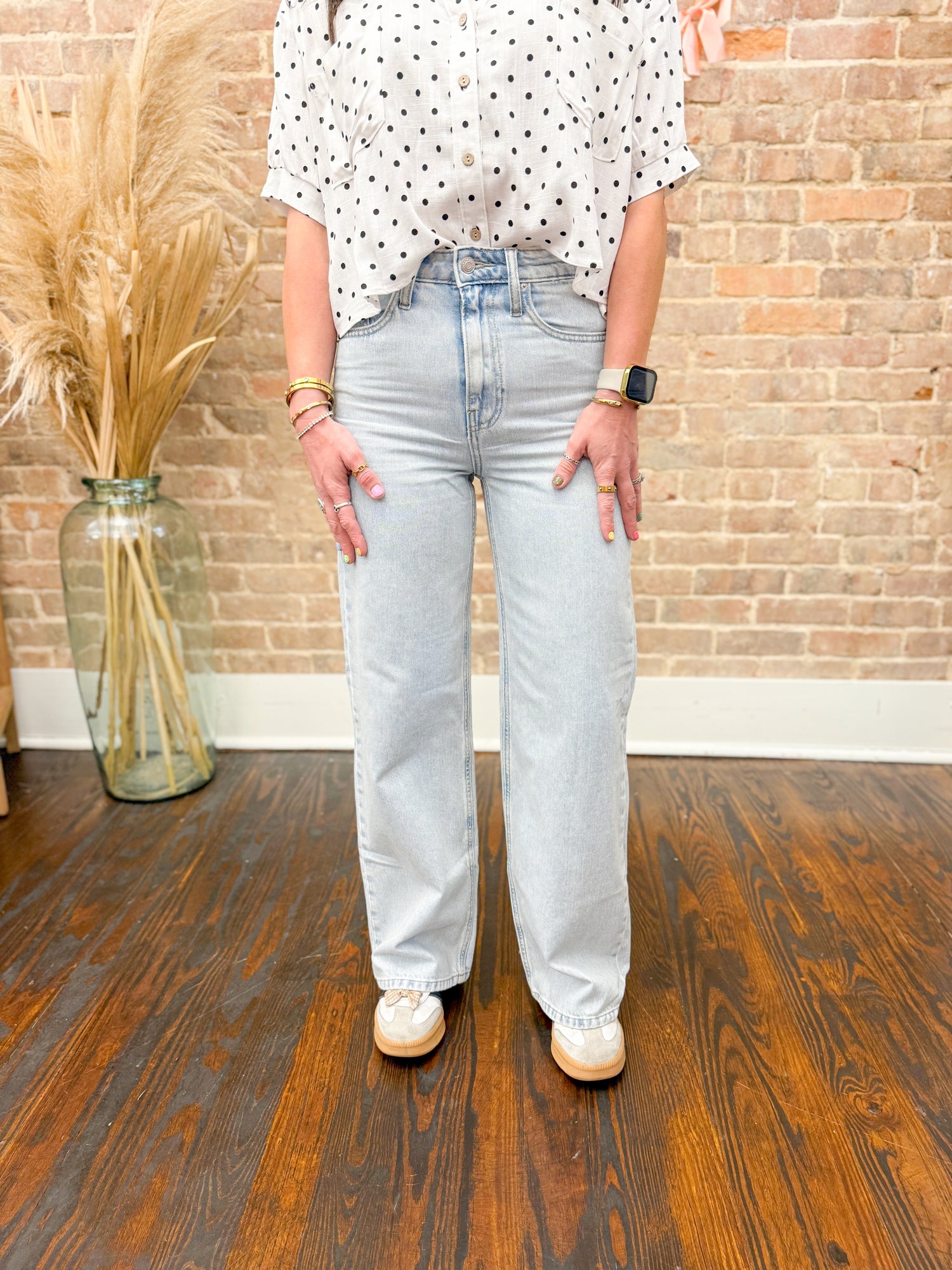 Elevate your wardrobe with the Connor Wide Leg Jeans, designed with a flattering high waist that enhances your silhouette. Crafted from 100% pure cotton, these jeans offer breathable comfort and durability for all-day wear. The wide leg cut delivers a trendy, effortless style that's perfect for both casual and dressed-up looks. Experience a perfect blend of comfort and fashion with these versatile jeans that easily become your go-to essential.