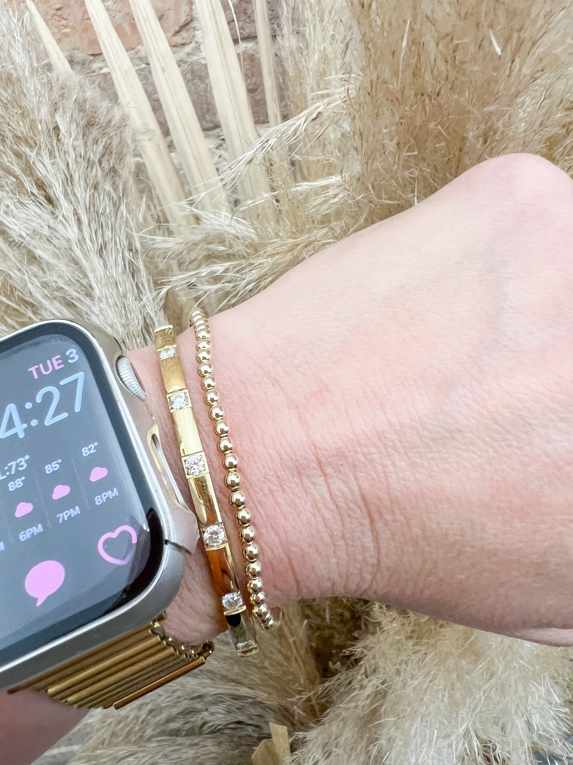 Introducing the CS: Gold Beaded Bracelet, the best selling jewelry that boasts a lifetime warranty and a tarnish-free, gold-plated finish. Add a touch of elegance to any outfit with its delicate 2.5MM beads. Don't miss out on this stylish and durable piece.