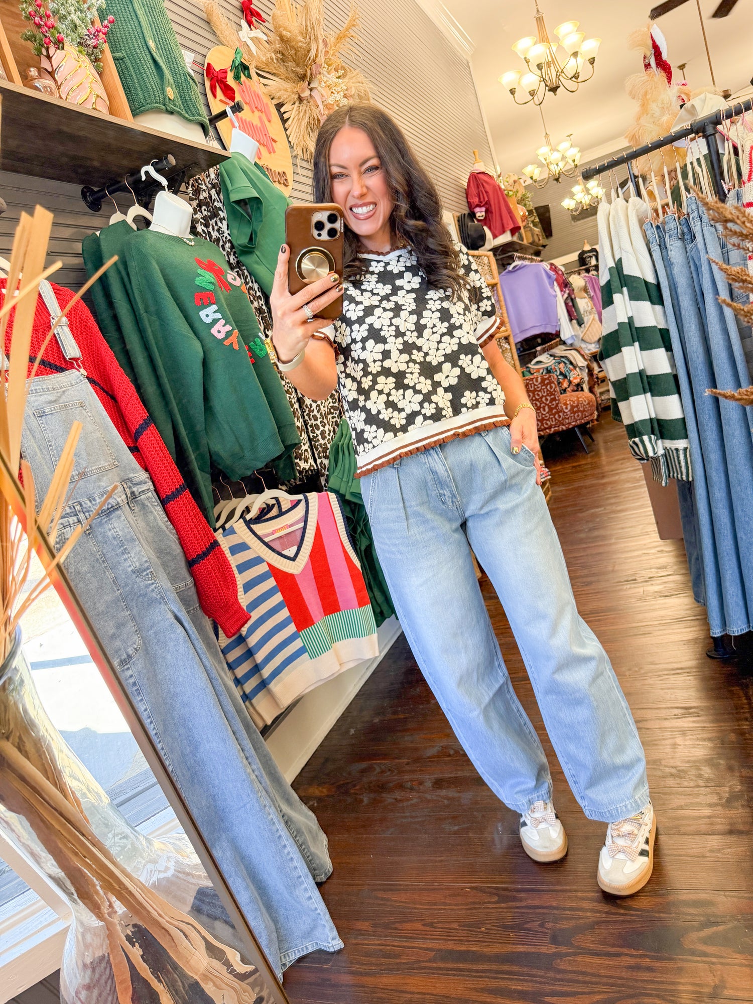 Elevate your wardrobe with the Ellie Floral Puff Sleeve Top, featuring a delicate embossed floral print that adds subtle texture and elegance. Contrast bands accentuate its silhouette, creating a refined, eye-catching detail. Perfect for dressing up or casual outings, this top blends feminine charm with modern style effortlessly.