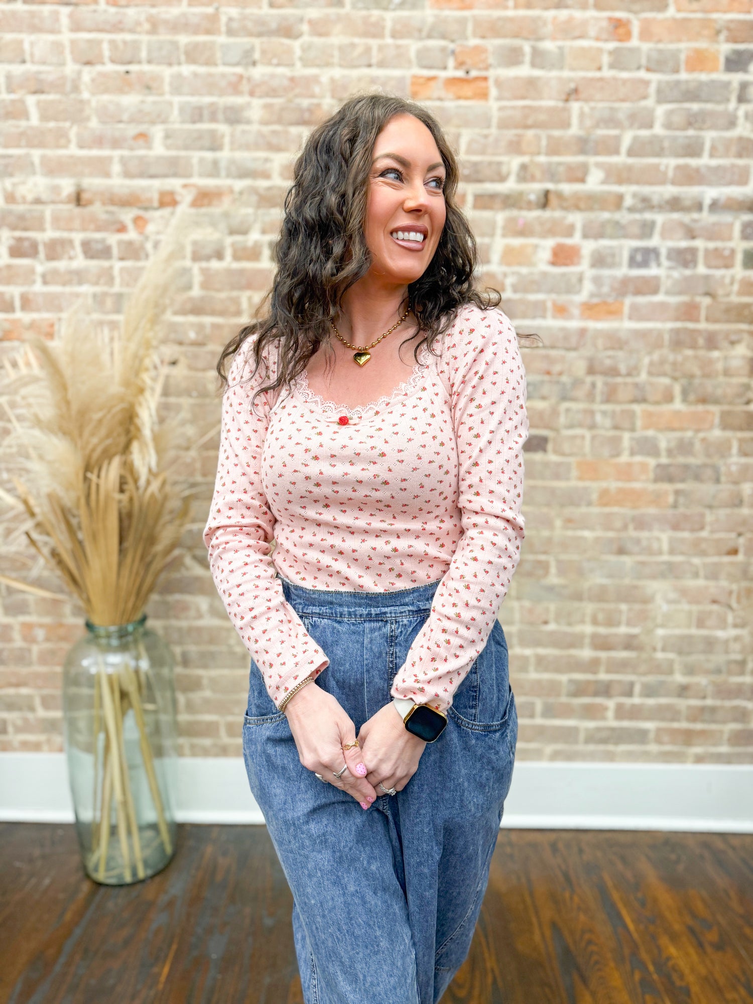 The Everlee Printed Top is your new go-to layering essential! This fitted beauty features delicate lace trim along the edges and an adorable tiny bow detail at the front—because the little touches make all the difference. Perfect for wearing solo or layering under your favorite pieces, it's designed to flatter and bring a playful vibe to any outfit. Whether you're dressing up or keeping it casual, this top adds just the right amount of charm and personality to your wardrobe.