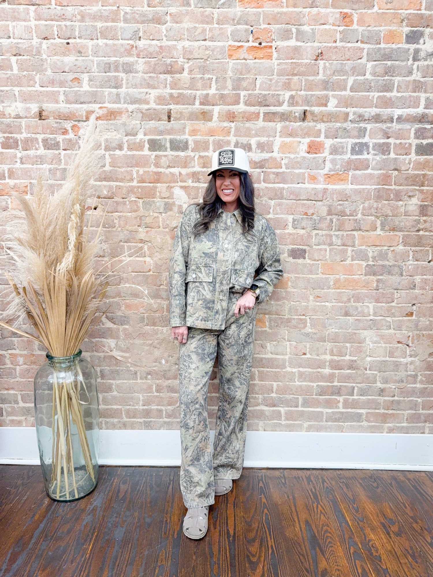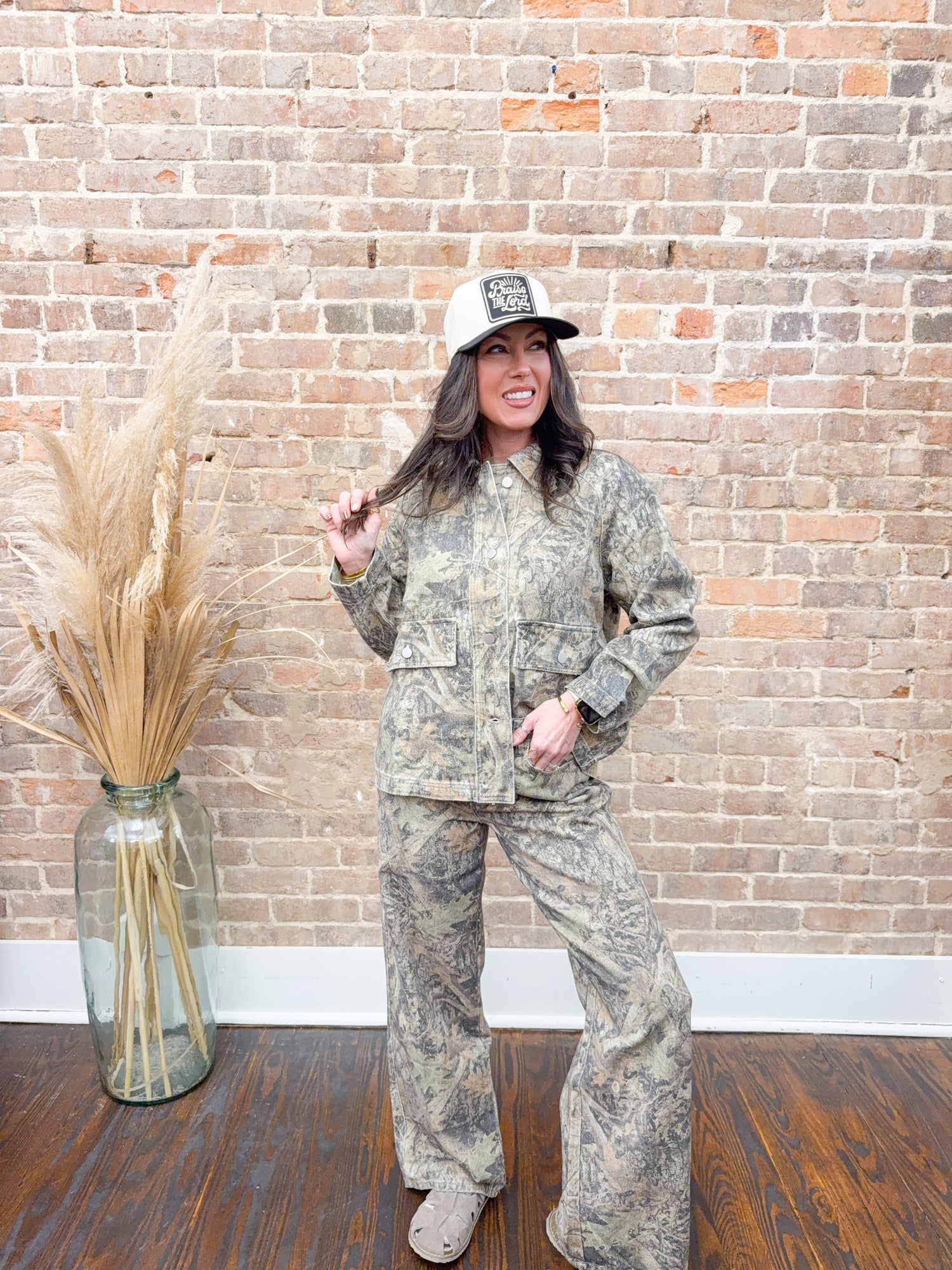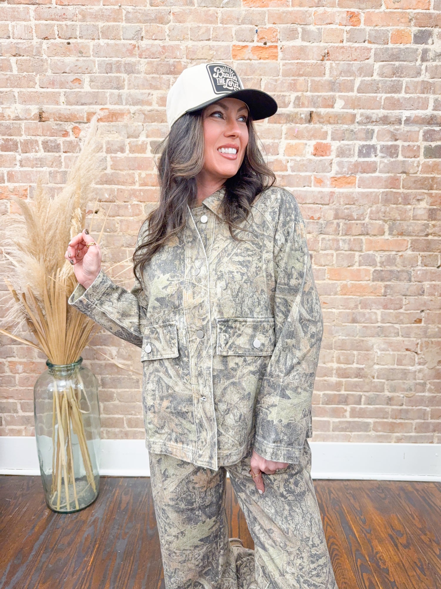 The Huntlee Camo Jacket features an oversized button-down design that blends comfort with bold style. Its loose fit allows for easy layering, while the camo pattern adds a rugged, adventurous edge to your wardrobe. Perfect for those who want to stand out effortlessly, this jacket combines practicality and fashion in one versatile piece.
