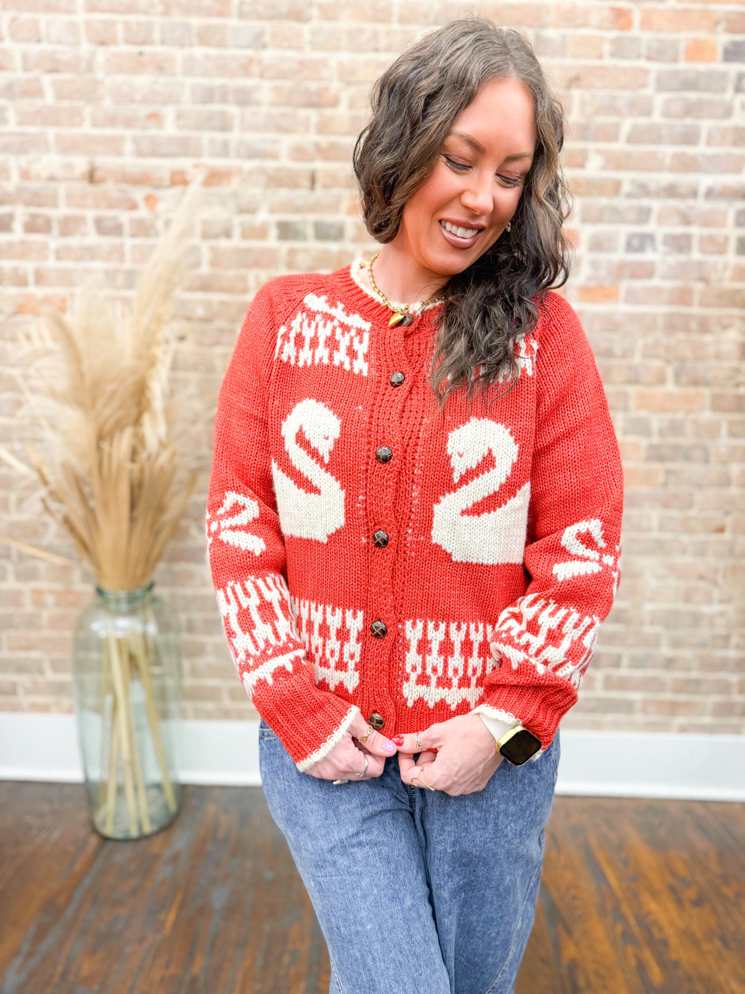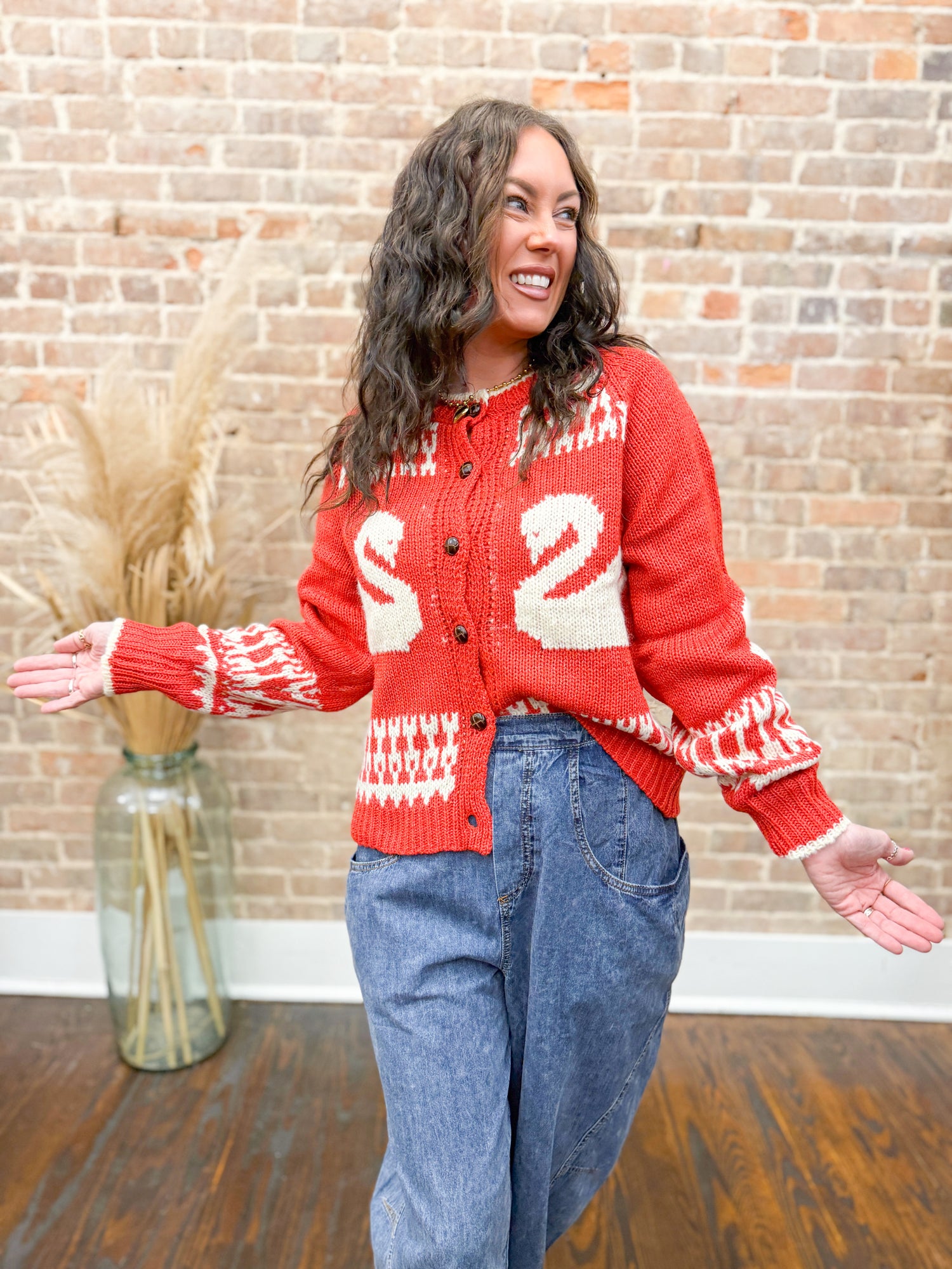The Raegan Swan Cardigan is your new go-to layer for effortless style. This oversized beauty features classic button-down closure and a ribbed hem that keeps everything in place while you move through your day. Perfect for throwing over anything in your closet—dress it up or down with ease. Cozy, chic, and ready for whatever comes your way.