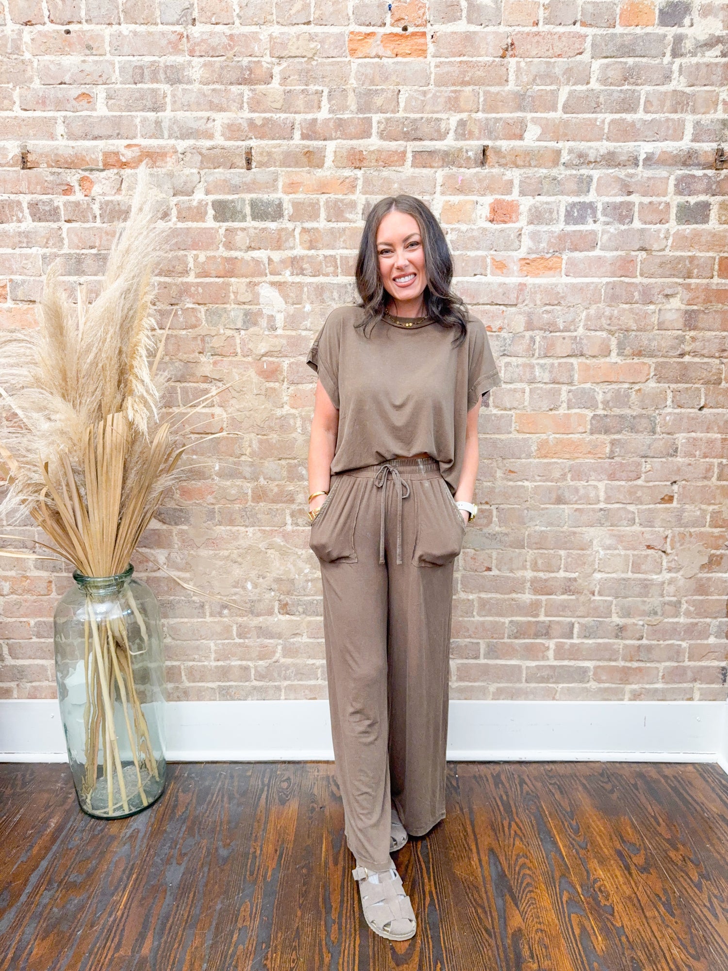Elevate your casual wardrobe with the Riley Washed Ribbed Set, featuring an acid-wash finish that adds a vintage-inspired edge. The ribbed fabric offers gentle stretch for all-day comfort, while the flowy short-sleeve top pairs effortlessly with matching pants for a laid-back yet stylish look. Perfect for versatile wear, this set combines comfort and trend in one easy outfit.