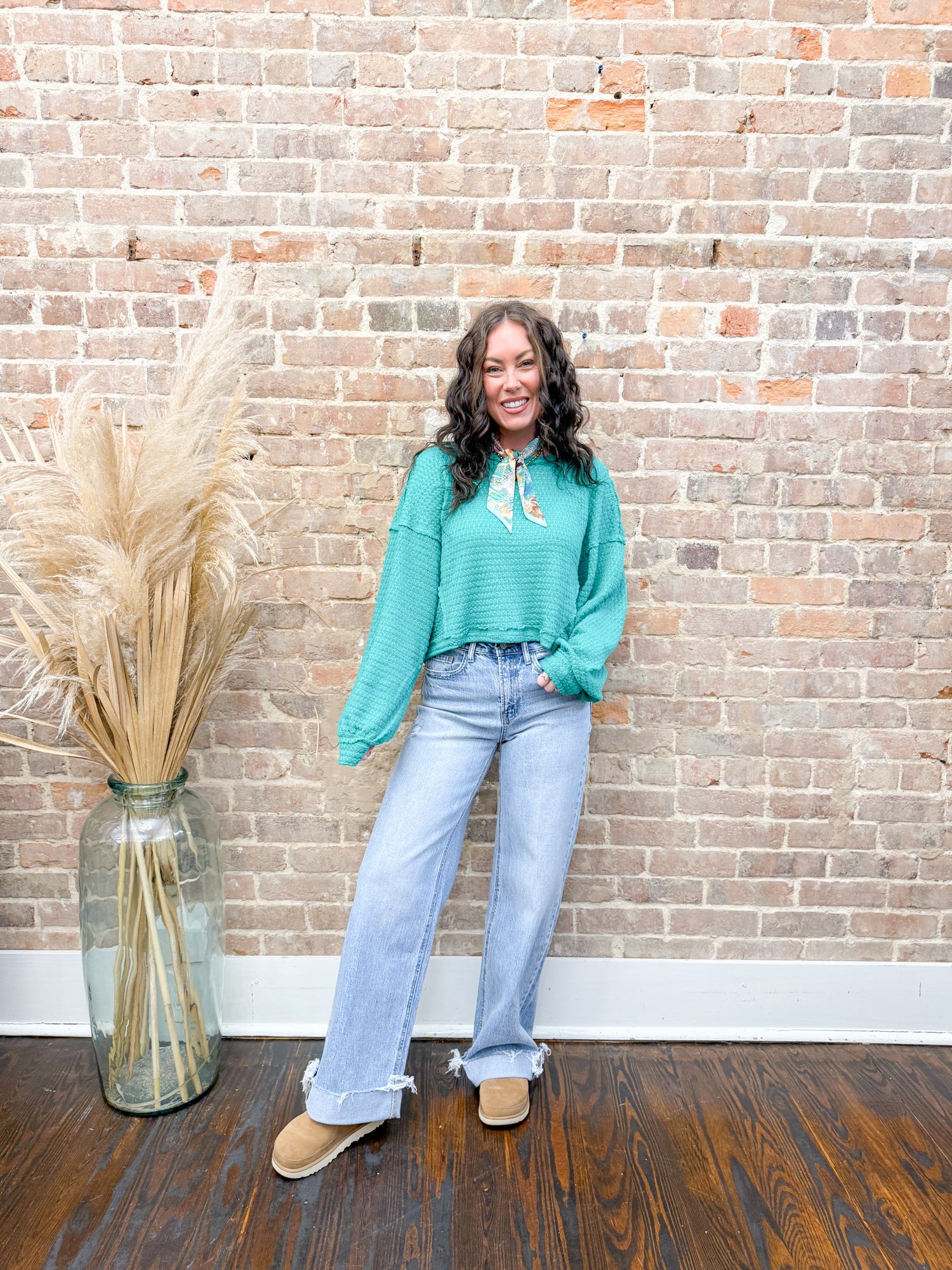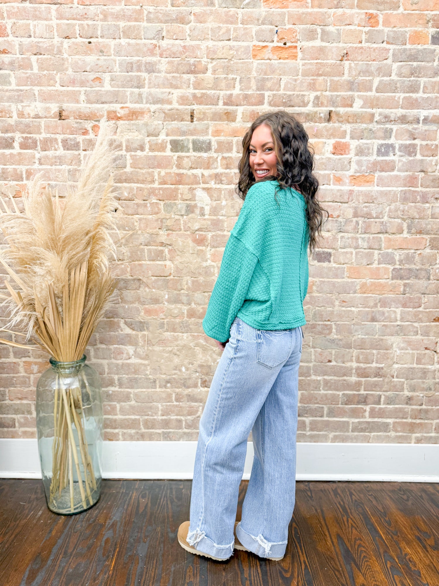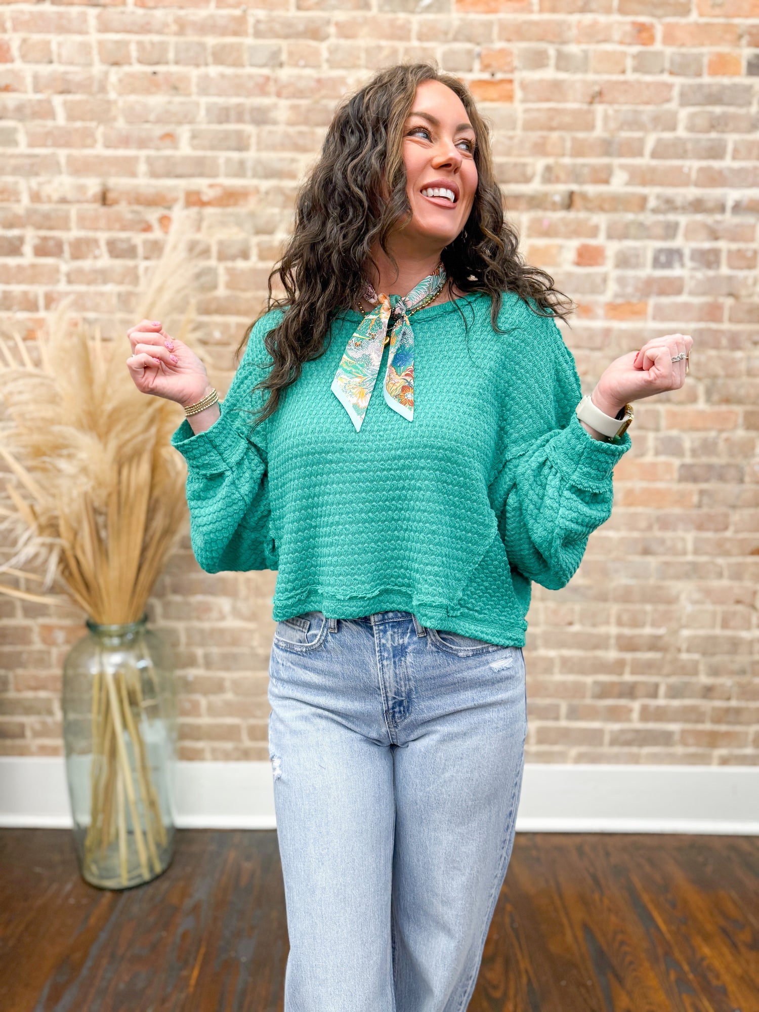Effortlessly chic and oh-so-cozy, the Willow Waffle Top is your new go-to for laid-back style. This oversized solid-color beauty features a textured waffle knit that adds visual interest while keeping things wonderfully soft. The round neckline and dreamy balloon sleeves give it a playful, relaxed vibe that works just as well with jeans as it does with your favorite loungewear. Perfect for those days when comfort and style need to be best friends.