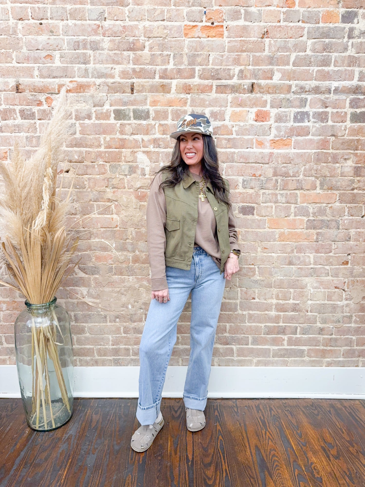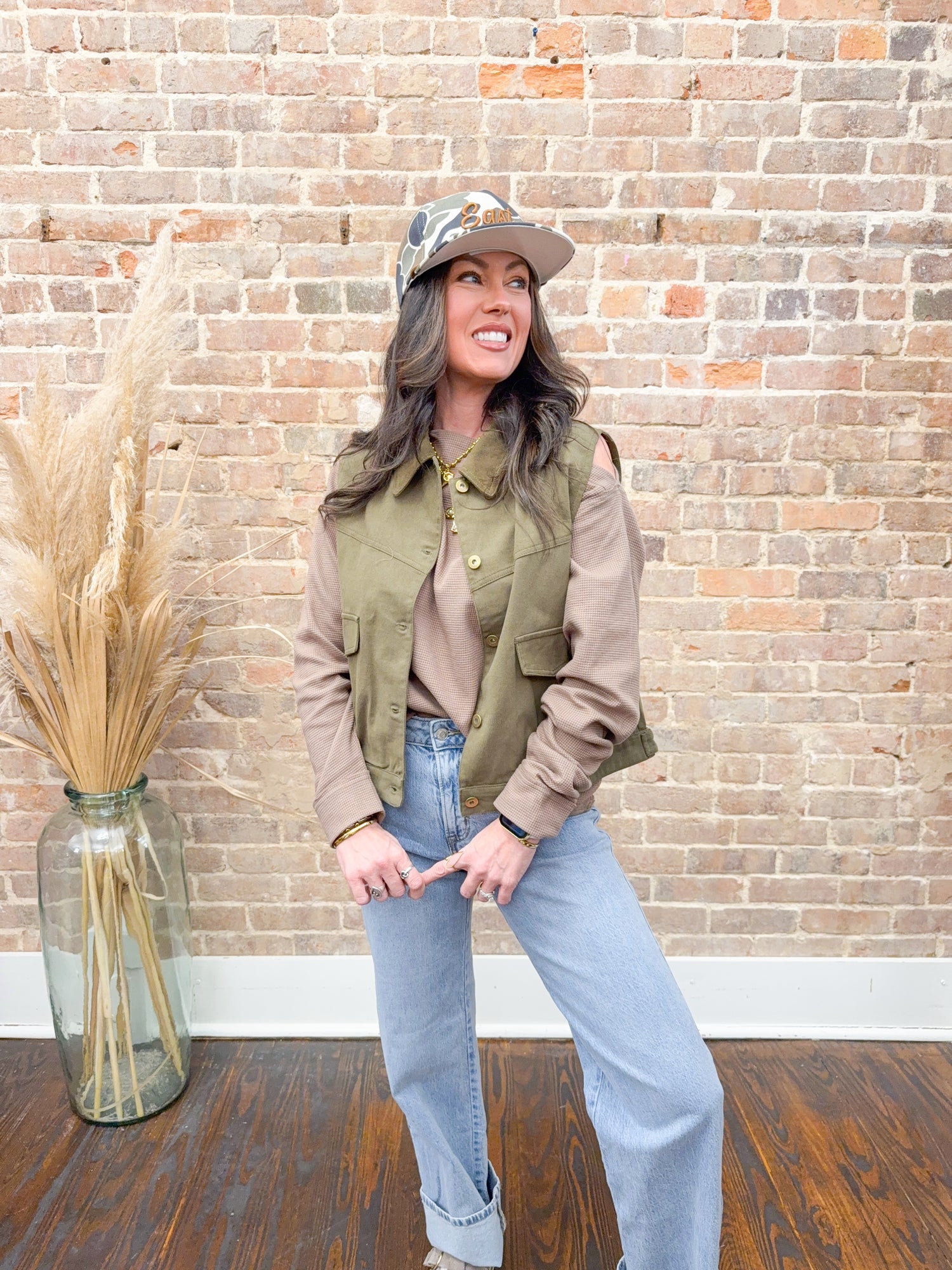 Elevate your layering game with the Winnie Barn Vest, crafted from soft washed cotton for everyday comfort. Featuring a crisp button-down front and a stylish contrast collar, it adds a refined touch to casual outfits. Practical side pockets offer convenient storage while maintaining a sleek silhouette. This vest perfectly balances function and fashion, making it a versatile addition to your wardrobe.